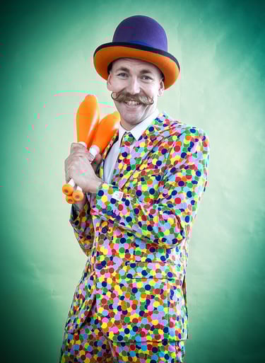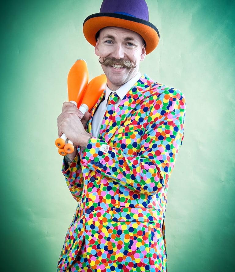 Experience laughter and amazement with the one-man circus show featuring juggling and comedy.